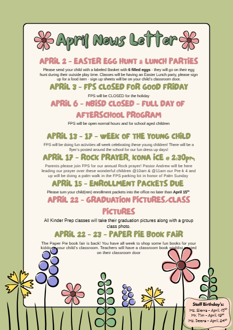 We are a private Christian school offering daycare, preschool, and after-school programs for students aged 6 weeks through 11 years old (5th grade). We serve the greater New Braunfels area, with special after-school bussing from several public schools in the New Braunfels Independent School District.